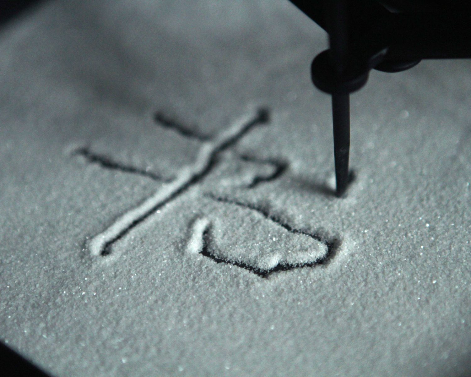 我们希望用科技的手段做一件追忆过去的事情。通过软件和硬件的配合,让笔迹重现在异地的沙面上。在沙子上的书写是一种象征,代表易逝的时光和生活。无论到什么时候,总有些字需要慢慢写,有些话需要慢慢读。在沙子上最终留不下的字迹,留在了人的心里。